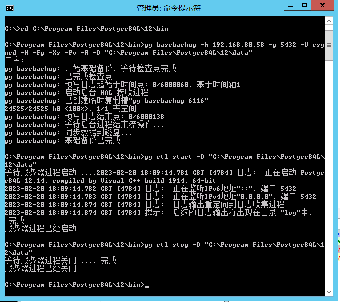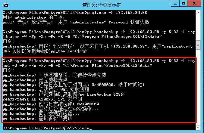 ### **一、准备工作** PostgreSql在9.0之后引入了主从的流复制机制,所谓流复制,就是从服务器通过tcp流从主服务器中同步相应的数据。这样当主服务器数据丢失时从服务器中仍有备份。 与基于文件日志传送相比,流复制允许保持从服务器更新。 从服务器连接主服务器,其产生的流WAL记录到从服务器, 而不需要等待主服务器写完WAL文件。 PostgreSQL流复制默认是异步的。在主服务器上提交事务和从服务器上变化可见之间有一个小的延迟,这个延迟远小于基于文件日志传送,通常1秒能完成。如果主服务器突然崩溃,可能会有少量数据丢失。 同步复制必须等主服务器和从服务器都写完WAL后才能提交事务。这样在一定程度上会增加事务的响应时间。 配置同步复制仅需要一个额外的配置步骤: synchronous_standby_names必须设置为一个非空值。synchronous_commit也必须设置为on。 **注: 主从服务器所在节点的系统、环境等最好一致。PostgreSQL版本也最好一致,否则可能会有问题。** ### **二、安装部署** 本示例采用两台相同配置的服务器进行部署,PostgreSQL12安装详情请参考《安装配置PostgreSQL12》 | 角色 | IP地址 | 系统版本 | 数据库版本 | PostGIS版本 | | :----: | ---- | ---- | ---- | ---- | ---- | |主服务器 | 192.168.80.58 | Windows Server 2012 R2 | PostgreSQL 12.14 | PostGIS 3.0.1-3 | |从服务器 | 192.168.80.59 | Windows Server 2012 R2 | PostgreSQL 12.14 | PostGIS 3.0.1-3 | #### **1、配置主服务器(58)** **(1) 打开Navicat,进入数据库,创建一个普通数据库用户,只赋予登录和复制的权限,执行以下语句:** create role rsyncd login replication encrypted password 'thth@1212'; **(2) 修改pg_hba.conf文件,设置rsyncd用户可以从192.168.80.0对应网段进度流复制请求,在结尾添加如下配置:** host replication rsyncd 192.168.80.0/24 md5  > **备注:** > *A. 即使之前添加过所有用户不限制IP地址登录,也要添加此配置项,否则数据同步不好用;* > *B. IP地址可配置成 0.0.0.0/0 根据具体的业务场景配置* **(3) 修改postgresql.conf文件,直接修改以下参数:** wal_level = replica ## 热备模式 max_wal_senders = 10 ## 最多有10个流复制连接 wal_keep_segments = 64 ## 日志文件大小64MB wal_sender_timeout = 60s ## 流复制超时时间 max_connections = 500 ## 最大连接时间,必须要小于从库的配置 **(4) 退出保存后,重启数据库服务** **(5) Windows防火墙,高级设置$\rightarrow$入站规则$\rightarrow$新建规则$\rightarrow$端口$\rightarrow$,特定本地端口,填入5432** #### **2、配置从服务器(59)** 测试从服务器是否能够连接到主服务器,如果可以正常连接,说明主服务器配置正常,否则检查下主服务器的pg_hba.conf文件; **(1) 关闭Postgresql服务,删除本地库(data目录)【这步需要做"基础备份",首次使用建议做好备份工作】** 删除C:\Program Files\PostgreSQL\12\data文件及文件夹 **(2) 复制库,使用主服务器创建的备份用户进行操作,切记在从服务器中打开CMD,进入C:\Program Files\PostgreSQL\12\bin执行以下语句:** pg_basebackup -h 192.168.80.58 -p 5432 -U rsyncd -W -Fp -Xs -Pv -R -D "C:\Program Files\PostgreSQL\12\data" > **备注:** > -R参数会在data路径下生成standby.signal,这个是关键。 > data路径下: postgresql.auto.conf 文件会添加连接信息。  **(3) 修改data文件夹属性** 文件夹属性$\rightarrow$安全$\rightarrow$高级$\rightarrow$更改权限$\rightarrow$添加以下3个用户,设置完成控制。 NETWORK SERVICE 完全控制 users 完全控制 Administrators 完全控制 > **注意:** > *新建data文件夹权限与原data文件夹权限不一致,不修改权限会导致最后重启服务失败* **(4) 成功之后,就可以看到data目录中现有的文件一主节点服务器都是一样的,而且还有一个自动生成的standby.signal文件**  修改postgresql.conf配置文件 max_connections = 1000 ## 比主服务器大 hot_standby = on ## 备机只读取模式 max_standby_streaming_delay = 30s ## 数据流备份的最延迟时间 wal_receiver_status_interval = 10s ## 类似心跳 hot_standby_feedback = on ## 如果有错误的数据复制,是否向主服务器进行反馈 **(5) 测试配置文件是否正常** pg_ctl start -D “C:\Program Files\PostgreSQL\12\data” pg_ctl stop -D “C:\Program Files\PostgreSQL\12\data”  **(6) 重新启动从节点postgresql-x64-12服务。** ### **三、测试** 主库新建用户user,创建数据库test,从库进行查看。 ### **四、其他主机查询** 修改从库data/pg_hba.conf文件 注:建议提供从库user用户给其他主机查询,并添加允许IP规则,不建议添加0.0.0.0/0开放查询 host all all 192.168.x.x/0 md5 ### **五、参考资料** 1. [Postgresql12在windows7下主从数据库配置笔记](https://www.jianshu.com/p/21f25e239945) 2. [postgreSQL(Windows)主从环境部署](https://wenku.baidu.com/view/777839a7f21dc281e53a580216fc700aba6852c6.html?_wkts_=1676962857344&bdQuery=postgre12%20windows%E4%B8%BB%E4%BB%8E)